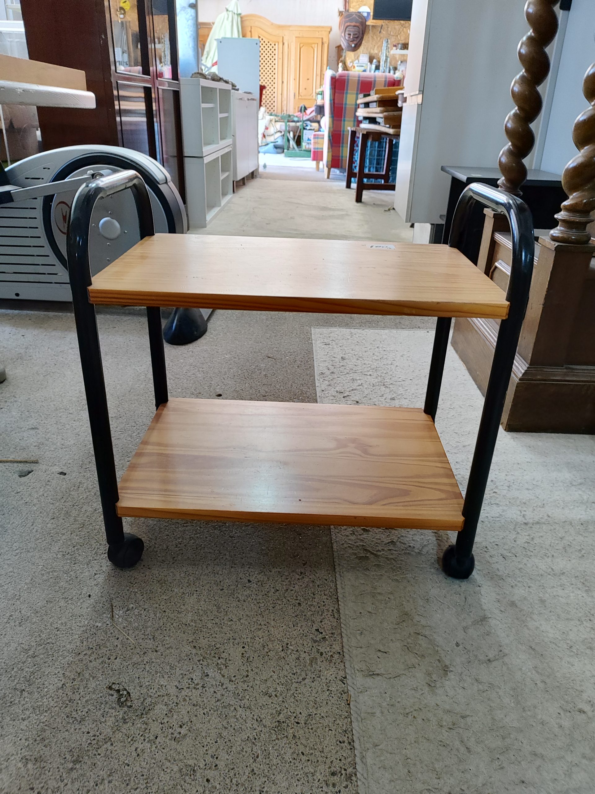 Măsuță practică cu două polițe, ideală pentru depozitarea accesoriilor, cărților sau a obiectelor de uz zilnic. Designul său minimalist, cu structură metalică și polițe din lemn, o face ușor de integrat în orice spațiu. Este stabilă, rezistentă și potrivită pentru utilizare zilnică, adăugând funcționalitate fără a ocupa mult loc.