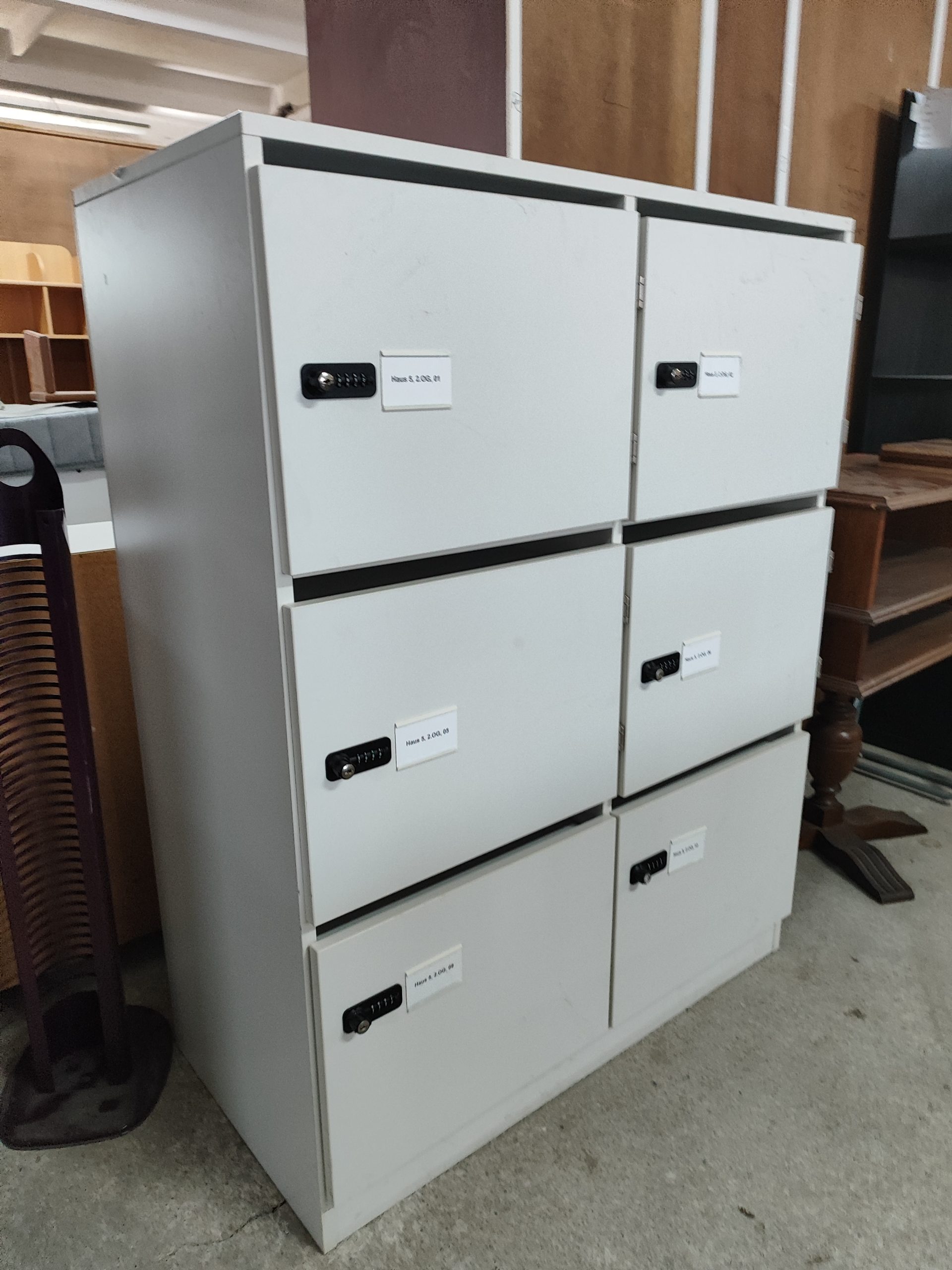 Dulap metalic practic și sigur, prevăzut cu 6 compartimente individuale, fiecare dotat cu sistem de închidere pe cod numeric. Ideal pentru păstrarea documentelor, obiectelor personale sau echipamentelor de birou, oferind atât siguranță, cât și organizare eficientă. Construcția solidă îl face potrivit pentru spații profesionale unde ordinea și securitatea sunt esențiale.